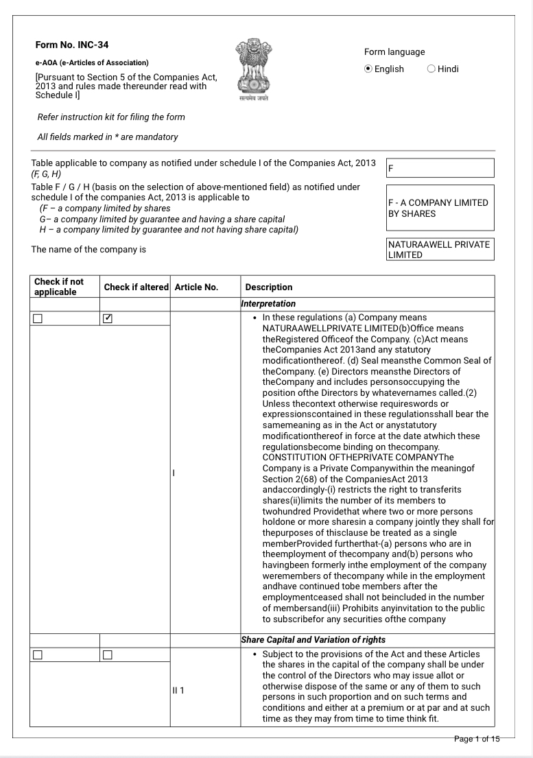Article of Association (AOA)